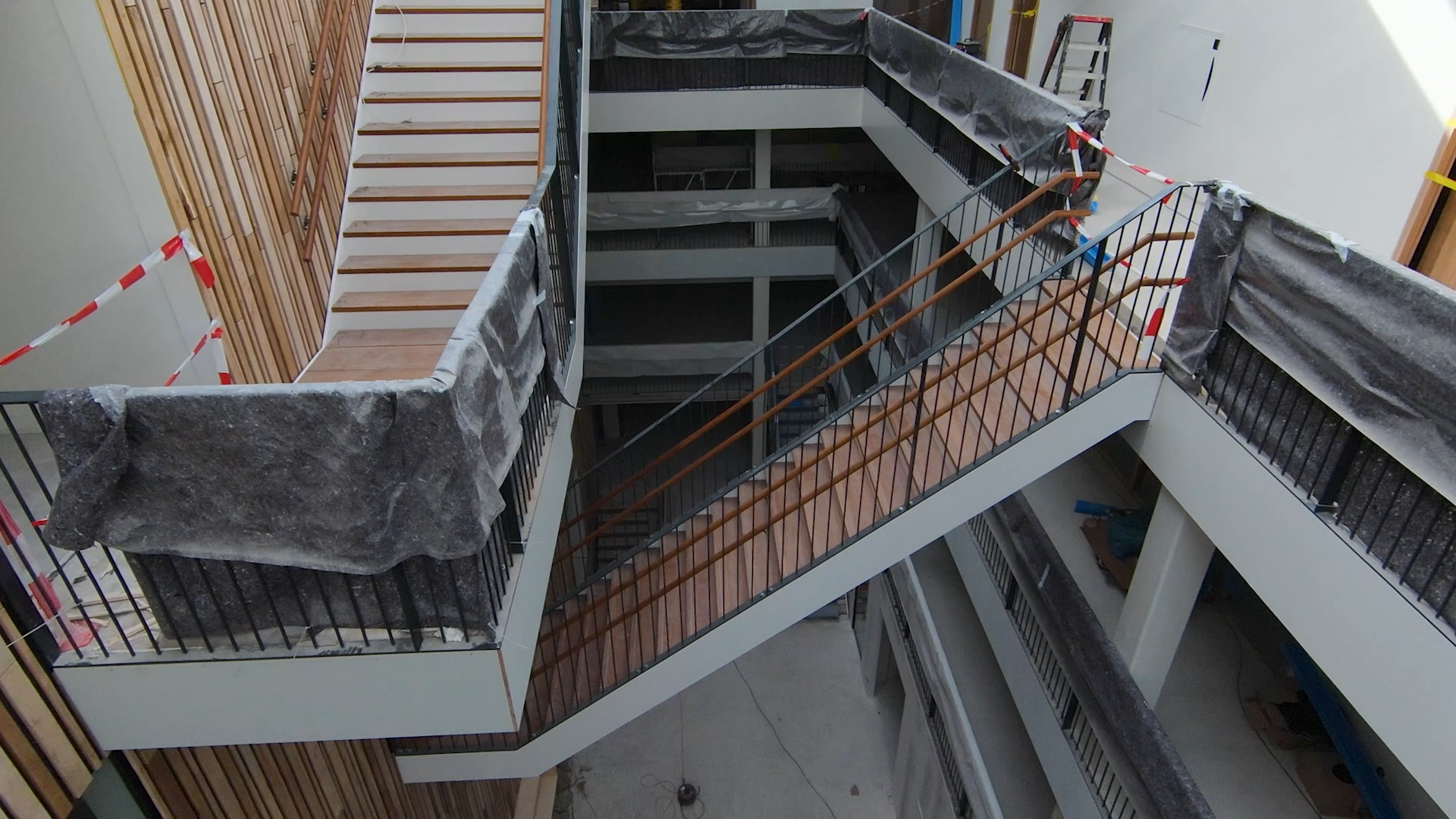 Voorbeeld video: Het gebruik van een FPV drone voor een momentopname van het nieuwe gebouw voor de Amsterdam International Community School (AICS).